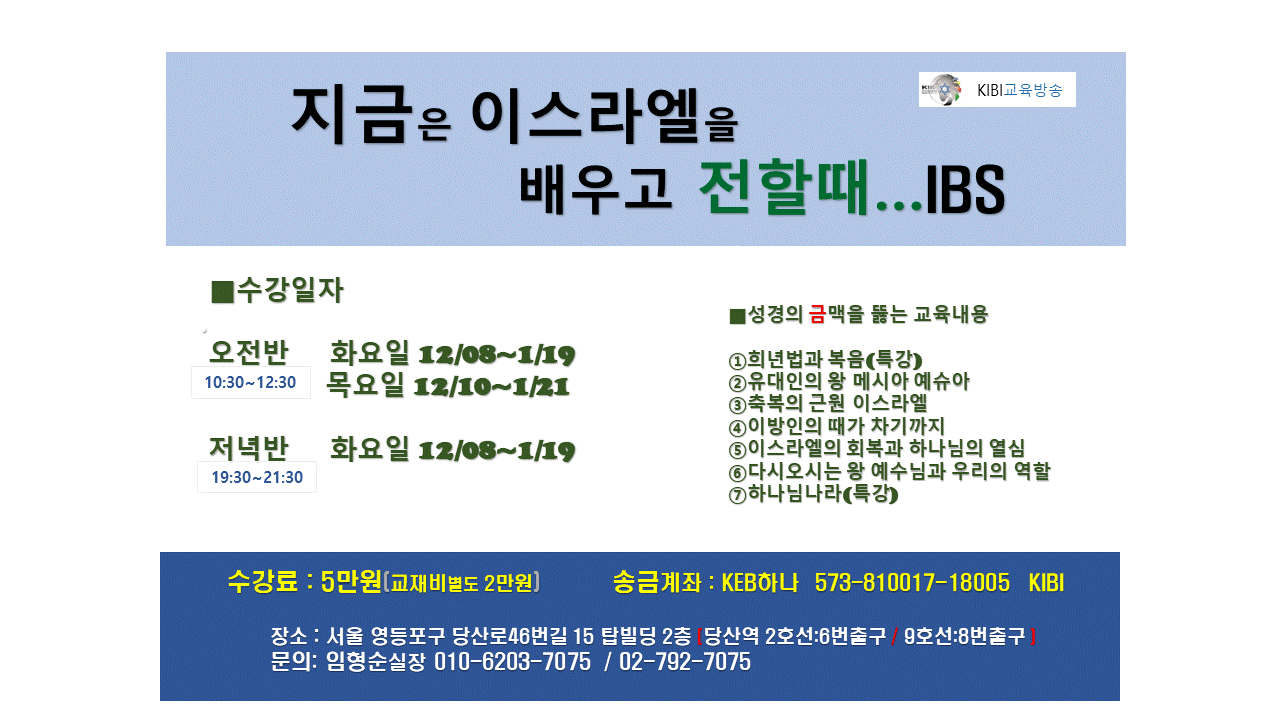 IBS교육일정: 저녁반29기 (월요일,화요일) / 오전반17기 (월요반,목요반)